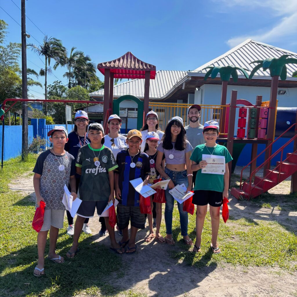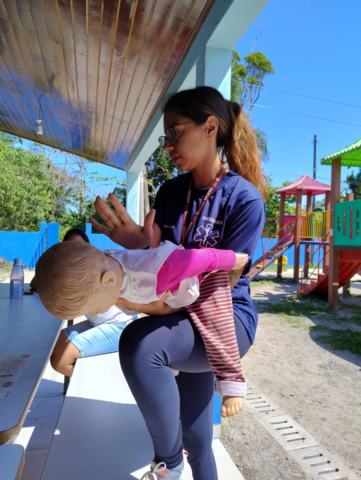 Nos dias 28 e 29 de novembro foi realizada a 13ª ação do Saúde nas Ilhas nas comunidades de Superagui e Ilha das Peças, em parceria com os projetos Letramento Digital e em Saúde, Plano de Parto e A Genética Te Explica. A jornada integrou cuidado, educação e escuta qualificada em diferentes pontos do território, adaptando a programação à rotina local e às celebrações da comunidade. Logo no início, a Brigada da Saúde trabalhou com as crianças temas práticos — hábitos saudáveis, prevenção de engasgo e importância da vacinação.